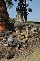 | ボロボロのチェディーが一基と頭部が崩れ落ちた座像、建物跡が残る。 |