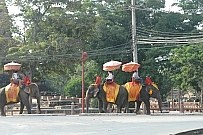 | アユタヤー島内にある唯一の象乗り場。象に乗りながら、ワット・プラ・ラームなどを散策できる。 |