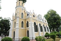 | 1878年(1879年という資料もある)に完成したタンマユット派の寺院。ラマ5世によってゴシック様式の教会を模して造られたもので、外観はキリスト教会そのもの。窓などにはステンドグラスが用いられ、扉の上方にはラマ5世を描いたステンドグラスがある。バーン・パイン宮殿とは川を隔てた反対側にある。川の対岸から寺へと向かうゴンドラに乗るだけでもおもしろい。 |