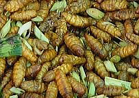 | 「ダックデー」とは、単に「さなぎ」を意味している。スズメガという蛾(ガ)のさなぎらしい(蚕<トゥア・マイ/ตัวไหม>という資料もある)。中身は柔らかく、味は淡泊。酒のつまみにGood。 |