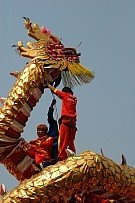 | アユタヤーでは、5日間(2011年の場合は正月の翌日から5日間)にもわたって盛大に中国正月をお祝いする行事が行われる。夜は、メイン・ストリートであるナレースアン通りで連日深夜まで獅子舞などが披露される。他のエリアとは日程がずれているので、たとえばバンコクの中国正月を見学した後アユタヤーの中国正月を見学することが可能。 |