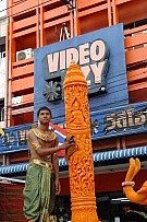 | 町の中心部を県庁までパレードする。ろうそくでできた山車は、あまり大きなものがなくてちょっと地味。パレードの最後は象さんたち。 |