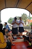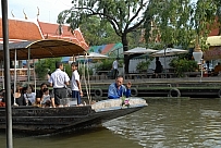 | 水上マーケット周辺のセーン・セープ運河を巡る遊覧するボート・ツアーです。本格的ではありませんが、手軽に楽しめます。学生によるボランティアのガイドが、いろいろと説明してくれます(ただし、タイ語ですが)。所要時間は18分程。料金は10B/人。料金は、ツアー終了直前に集めに来ます。 |
