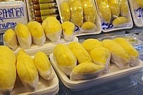 産地としては、チャンタブリー県やノンタブリー県などが有名。実は、枝から直接ぶら下がってなっている。「モーントーン(หมอนทอง)」「チャニー(ชะนี)」「カーンヤーオ(ก้านยาว)」「クラドゥム(กระดุม)」「ゴップ」などの品種がある。ビタミンCなどが多く含まれている。ドリアン・アイスやドリアン・チップス、ドリアンようかん(トゥリアン・クワン)なども有名。 |
