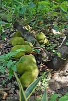 | インドが原産だと考えられている、実がとても大きくなることで有名な果物。その果実は、全長1m(重さ40kg以上)ほどの大きさになることもある。果肉は黄色のものが一般的だが、赤みがかったものもある。果実は、木の幹から直接ぶら下がっているのがおもしろい。木は、最大で20mもの高さになるという。また、木の成長は早く、たった3年で果実をたくさん実らすことができる。 |