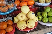 | 黄色、黄緑色、黄土色など、色合いはさまざまなものがある。とてもジューシー。日本のものに比べ、あまり甘くない。 |