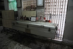 第二次世界大戦を中心に、「戦争」をテーマにした写真や品物が雑然と展示されている。館内には、大きな仏塔まである。屋外には、日本軍が捕虜に命じて造らせたクウェー川に初めて架けられた木造橋の残骸が展示されていることでも知られている。また、テラスからは、クウェー川鉄橋全体を見渡すことができる。かなり見ごたえがあるので、ゆっくりと回ると時間がかかる。