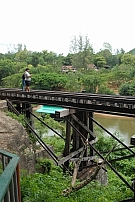 | 二つのタム・クラセー駅に挟まれた区間で、全長約300mのクウェー・ノーイ川に沿い岩壁すれすれに造られたS字カーブ形木造橋。タイ国鉄ナムトック線のクライマックスでもある。列車はこの橋を渡る際、安全を図るために時速5km(10kmという説もある)までスピードを落として徐行する。列車に乗りここを通過すると、ナムトック方向に向かい右側が岩壁、左側は蛇行するクウェー・ノーイ川を望むことができる。ここで走行する列車の写真を撮ろうとする人は多いが、列車が遅れることが多く、いつ来るかはっきりしないので大変だ。 |