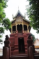 | 第一級王室寺院。ラムプーンで最大の観光ポイント。1108年 (897年、1044年、1157年という説もある)にメンラーイ王が建立した寺院。金色に輝くチェディー(仏塔)は高さ46mで、現在の姿は1443年にチェンマイの王が修復したもの。大きな青銅のドラを吊した赤い御堂がある。市内観光用のトラム(月曜日以外に運行)乗り場もある。 |