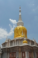 1979年、文化庁の調査で、三重の金、銀、銅製の容器に納められた仏舎利が出土した。そのため、関係者が東北地方に古くから仏教が栄えたことを記念し、1987年にプラタート・ナドゥーン寺院を建立した。四角い土台の上に鐘型の大きな白い仏塔が乗る形は、出土した容器の形に模って造られたもの。仏塔の周囲には四つの小さな仏塔が配置されている。近くには、博物館などもある。 |