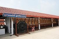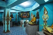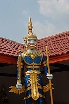渡し船で渡ると、巨大なプラ・プットモンコンチャイが出迎えてくれる。この寺院の面白いところは、この大きな座仏だけではない。座仏の後方には、テーマ・パークのような世界が広がっている。俗に言う地獄寺ではないのだが、「仏教説話」「ガネーシャ」「ルーシー」などをテーマとしたさまざまなカラフルな像がずらっと並んでいて楽しい。観光客にとっても、意外に見応えがある寺院だ。 |