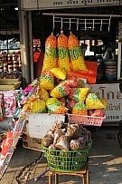 | 寺院内にあるお店では、魚のエサを売っているのが目立つ。 |