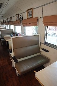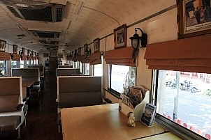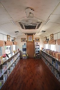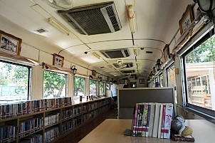 | フアヒン駅前のロータリー内にある図書館。敷地は小さな公園のようになっている。日本からタイ国鉄に無償譲渡された?車両が、引退後に利用され図書館になっている。車両は、キハ58系ディーゼルカーが2両使用されている(車両番号は不明だが、キハ58とキハ28とのこと)。また、一角には小さな祠もある。 |