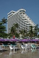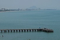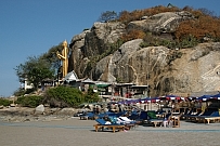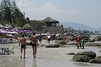 | 長い白砂のビーチが続いており、ところどころに大きな岩が出ている。「フア・ヒン」とは、岩(ヒン/หิน)の頭(フア/หัว)という意味だ。マリン・スポーツはあまり盛んではなく、ビーチでの乗馬が有名。全体的に、のんびりとしたビーチだ。マリオット・リゾート&スパ周辺は、歩くと砂がキュッキュッと鳴くという。 |