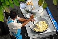 小麦粉と砂糖を練って団子のように丸め、油で揚げたもの。食感はちょっと不思議で、外側は比較的カリッとしているのですが中はモチッとしています。