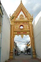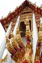 ムーン川沿いに位置する寺院。本堂は、細くて高いのっぽな形状をしている。